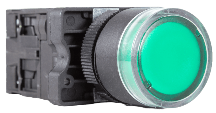 Diámetro de perforación: 22mm//%•Material del cuerpo: acero inoxidable//%•Tipo de contacto: momentáneo//%•Actuador: cabeza plana//%•Salida: 1xNA+1xNC//%•Capacidad de los contacto: 5A - 48VCC o 250VCA//%•Base recomendada: AV22-SQ