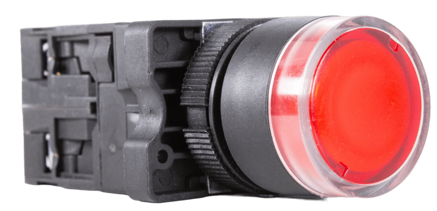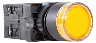 Pulsador metálico momentáneo de alta resistencia, con diámetro de 22mm e iluminación LED, para conexión por terminal faston 2,8x0,5 o por soldadura. Cuerpo de acero y sello contra entrada de líquidos. Grado de protección IP65.