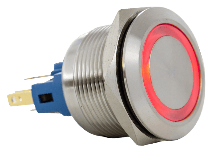 Diámetro de perforación: 22mm//%•Material del cuerpo: plástico//%•Tipo de contacto: alternado//%•Actuador: cabeza de hongo//%•Salida: 1xNC con ruptura positiva//%•Capacidad de los contacto: 5A - 380VCA/